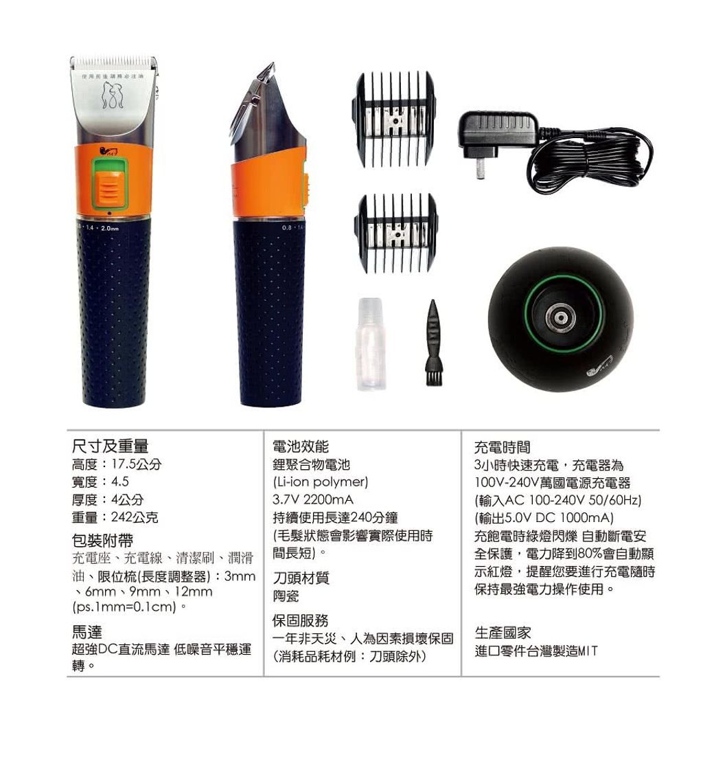 【PiPe 煙斗牌ER169】台灣製 煙斗牌ER169 無線專業寵物電剪毛器